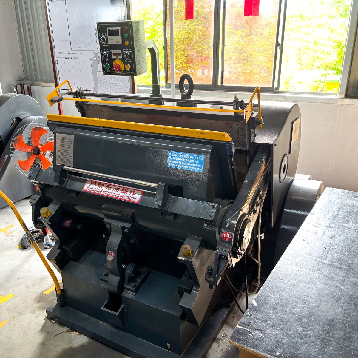 ModelMax EffectiveCutting AreaWorking SpeedCreasing& Cutting LengthMotor PowerMachine weightDimension (L×W×H)PYQ401C750×520mm28 ±2(stroes/min)<15m2.2kW2000kg1260×1350×1280mmPYQ203D930×670mm23 ±2(stroes/min)<25m4.0kW3000kg1800×1600×1600mmML11001100×800mm20 ±2(stroes/min)<32m5.5kW4500kg1900×1800×1700mmML12001200×830mm20 ±2(stroes/min)<35m5.5kW4800kg1900×2000×1700mmML13001300×920mm18 ±2(stroes/min)<35m5.5kW/7.5kW6000kg2000×2400×1900mmML14001400×1000mm18 ±2(stroes/min)<45m5.5kW/7.5kW6500kg2000×2450×1900mmML15001500×1050mm18 ±2(stroes/min)<45m5.5kW/7.5kW7000kg2000×2500×1930mmML16001600×1250mm16 ±2(stroes/min)<52m11kW9000kg2170×2560×2130mmML18001800×1300mm16 ±2(stroes/min)<62m15kW10840kg2240×2850×2230mmML20002000×1400mm16 ±2(stroes/min)<80m15kW14500kg2280×3000×2230mmML22002200×1450mm16 ±2(stroes/min)<90m18kW16500kg2280×3000×2250mmML25002500×1600mm13...